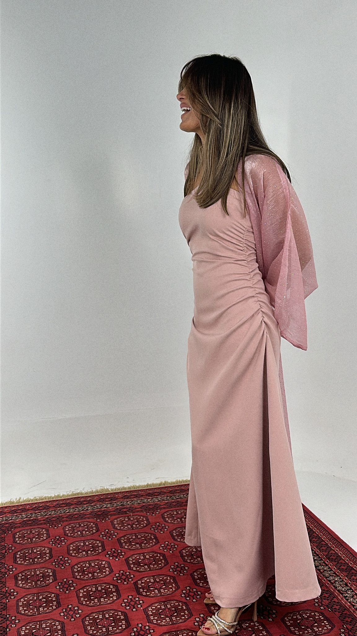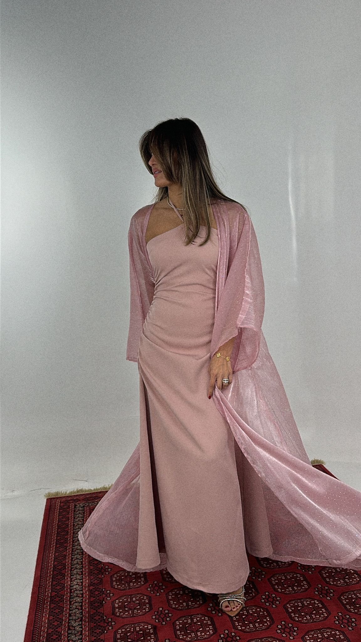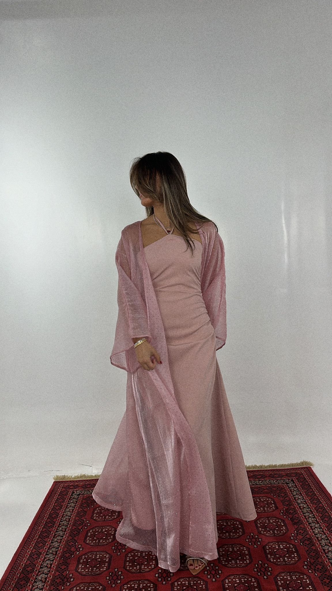 Piece#2: A transparent piece made of shiny fabric with long sleeves